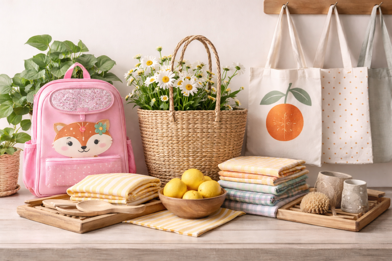 - Home products such as doorstops, draught excluders, blankets, storage boxes, and laundry baskets and jumbo laundry bags.