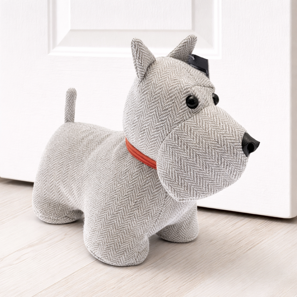 Add charm and practicality to your home with this adorable Scottie door stop. Designed to keep doors securely in place, this soft yet sturdy fabric doorstop doubles as a stylish decorative piece.