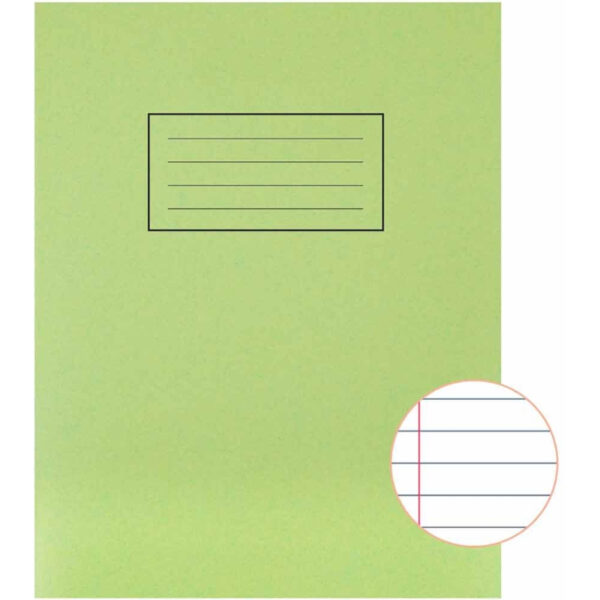 Size: 9″ X 7″ 80 pages Ruled with 8mm lines and a margin 75gsm paper Durable manilla cover Colour: Green