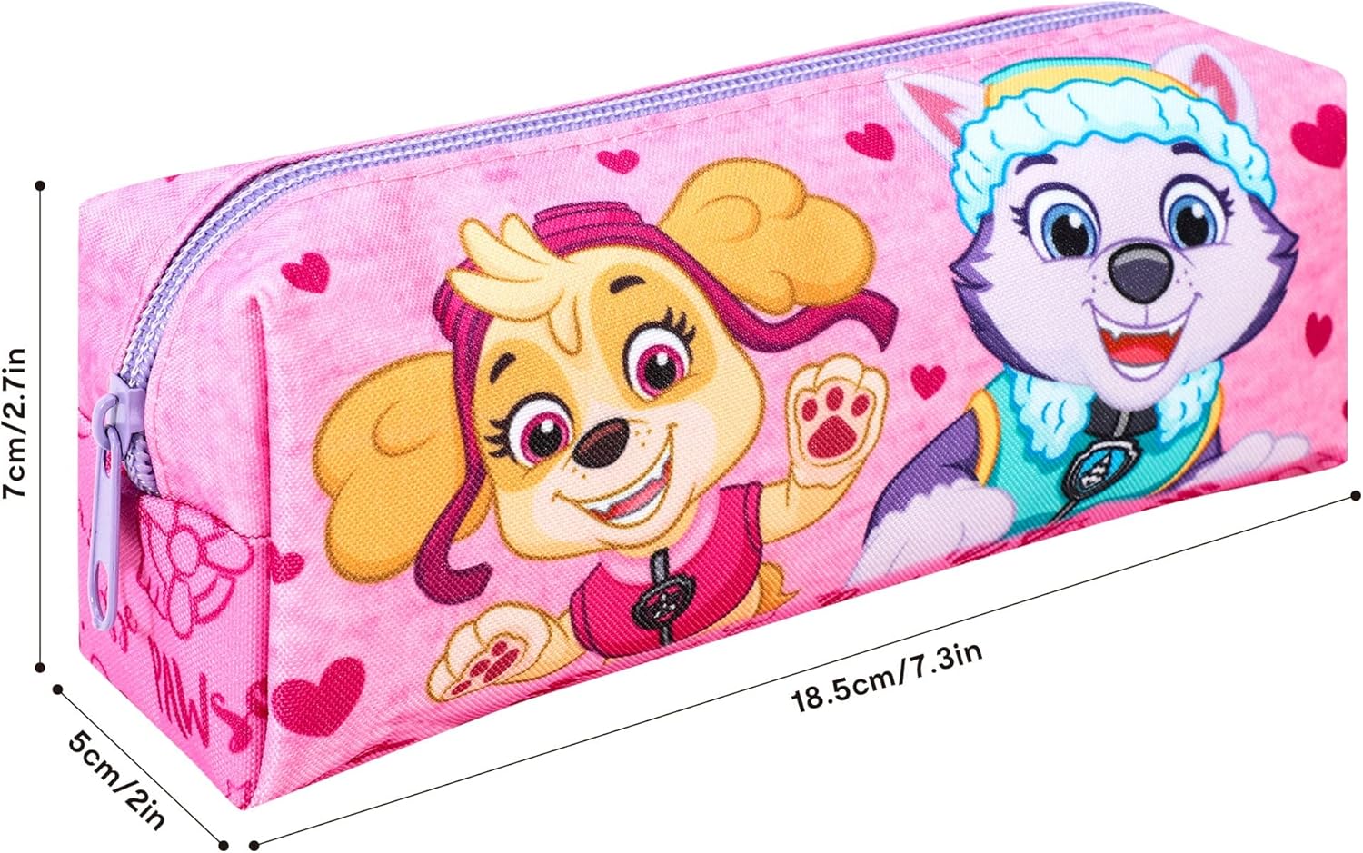 πŸŽ€Β  Skye Pup pink, rectangular pencil case with a single zip closure.
