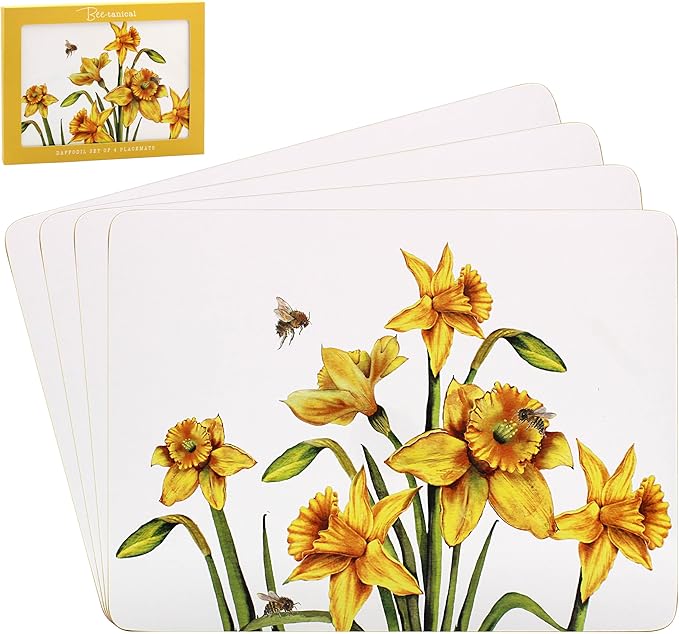 The Leonardo Collection Daffodil Botanical Table Place Mats Set of 4 | Non Slip Washable Table Mats For Dining | Designed By Macneil Studios | Set of 4 Printed Designer Placemats